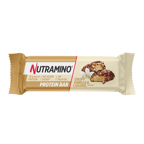 In a Nutramino Protein Bar Crispy Vanilla & Caramel you get the best of two worlds - up to 18g of protein for your muscles and at the same time a heavenly taste and consistency that can match any sinful chocolate bar.
