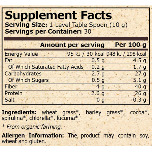 PN > Organic Detox mix, Wheat grass, Barley, Cocoa, Chlorella, Spirulina, Lucuma 300g